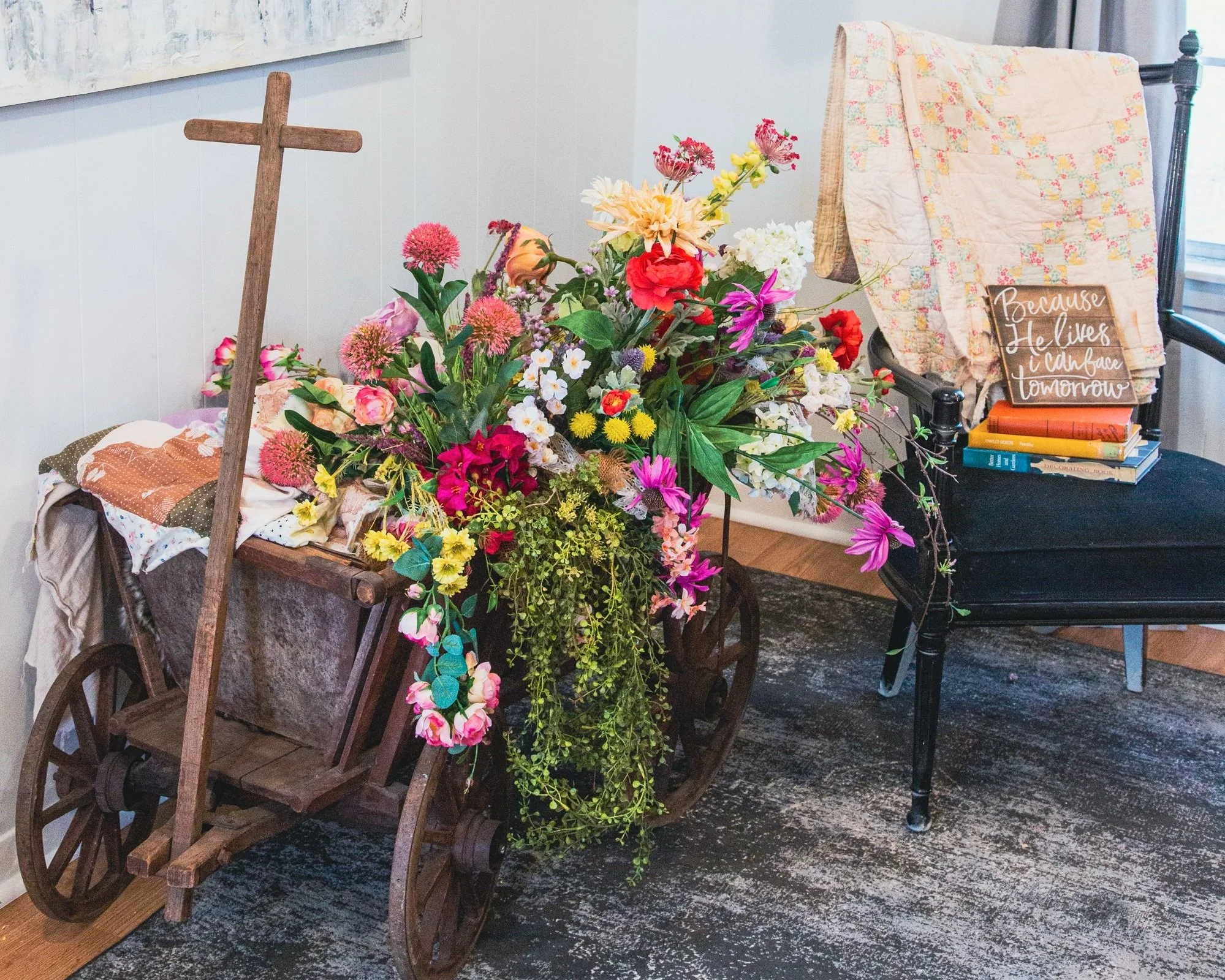 Come enjoy our rustic spring sets that mix a little bit of country with the modern spring floral design. In our space you will have access to 2 spring sets for the price of one. These sets are located in the Chapel Studio.
